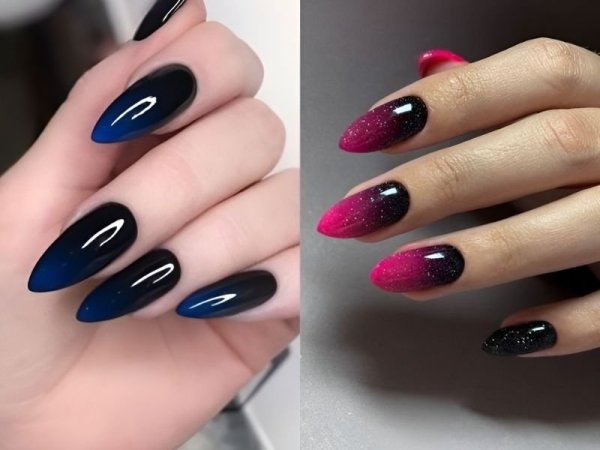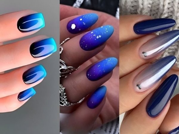 Mẫu nail ombre màu xanh dương đẹp mắt (Nguồn: thetrendspotter.net, vk.com) Những mẫu nail ombre cho da ngăm màu xanh dương (Nguồn: amzn.to, herlifesparkles.com, SHEIN)Mẫu nail ombre đen quyến rũ
