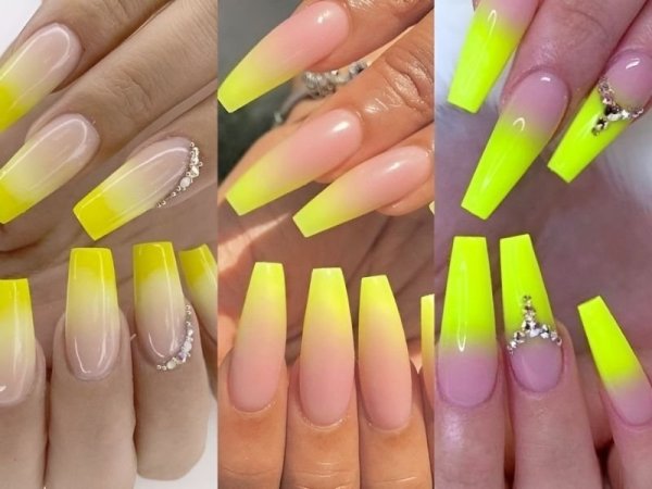 Mẫu nail ombre màu vàng nổi bật (Nguồn: naildesignsjournal.com, surethings.net, barb.pro) Những mẫu nail ombre tông vàng rực rỡ (Nguồn: barb.pro, womenstyle.com, naildesignmag.com)Nail ombre trắng thanh lịch