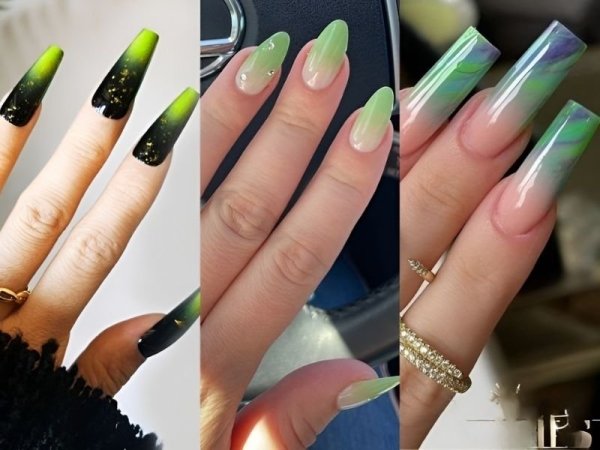 Mẫu nail ombre tông màu xanh lá nổi bật, cá tính (Nguồn: barb.pro, etsy.com, MXL Nails) Nail ombre màu xanh lá phối màu cực chất (Nguồn: naildesignsdaily.com, Nail Art Design)Nail ombre hồng ngọt ngào