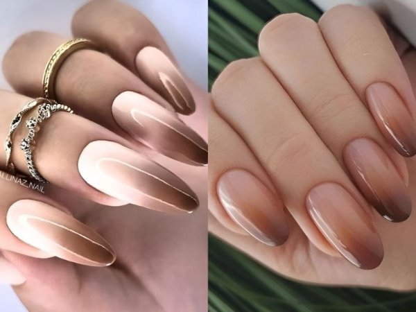 Nếu ưa chuộng phong cách cổ điển, sang trọng thì bạn có thể tham khảo mẫu nail ombre tông nâu. Sắc nâu có độ chuyển màu đậm nhạt khéo léo sẽ không khiến bạn trông bị “dừ”. Ngoài ra, bạn cũng có thể kết hợp thêm một chút nhũ ánh vàng hoặc ánh bạc để tổng thể được lung linh và bắt mắt hơn.