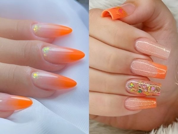 Mẫu nail ombre tông cam nổi bật (Nguồn: Universo Feminino, linktr.ee) Mẫu nail ombre màu cam phối nhũ đẹp mắt (Nguồn: Jéssica Sousa, go.fiverr.com) Những mẫu móng tay ombre tông màu cam (Nguồn: Kim Ngọc Nails, Nails Design)Nail ombre tím