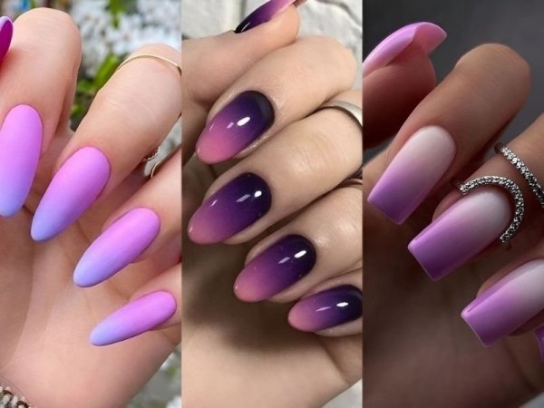 Mẫu nail ombre màu tím trendy (Nguồn: kbeautyaddiction.com, Royal Nails) Những mẫu nail ombre tông màu tím đẹp mắt (Nguồn: Nails Bar, melodyjacob.com, kbeautyaddiction.com)Sơn thạch ombre trendy