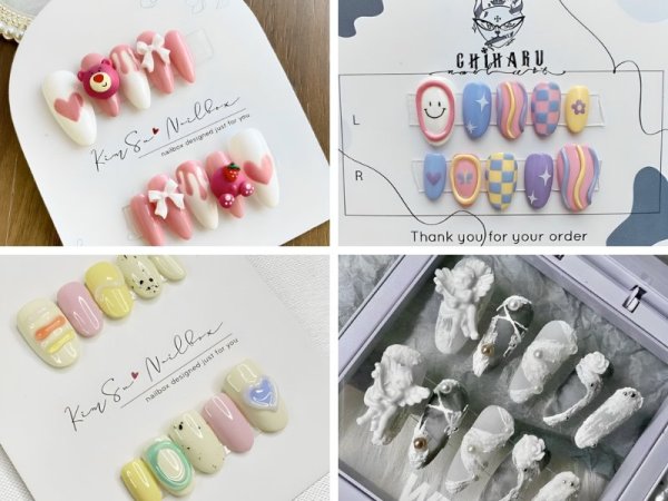 - Bộ móng giả: có thể là những bộ nail box trơn hoặc được thiết kế họa tiết độc đáo.
