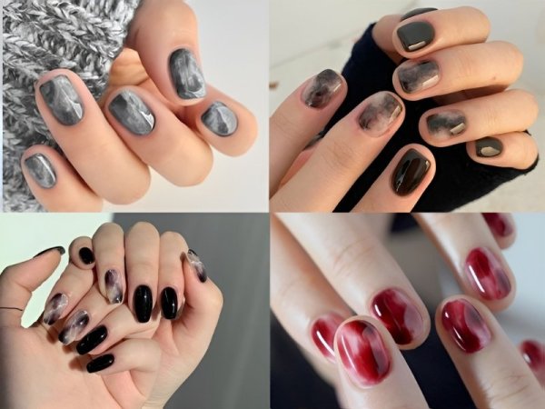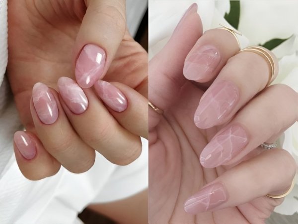 Móng tay vân đá 3D đẹp, sang nhưng không quá cầu kỳ (Nguồn: Kbeauty Addiction, lovika.com) Sơn nail thạch vân đá không kén dáng móng (Nguồn: TheGreySpace, @bbifleurs – Pinterest, @jennwallingford – Pinterest)Cách chăm móng tay màu thạch