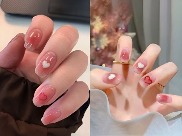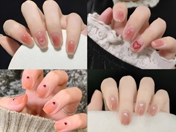 Họa tiết trái tim là mẫu nail sơn thạch đơn giản phổ biến (Nguồn: temu.com – Pinterest, br.shein.com) Các bạn có thể phối trái tim ở góc móng hoặc giữa móng tùy theo sở thích (Nguồn:@sumy520 – Pinterest, shopee.vn, @Dilys_Chilly – Pinterest, @vampykang – Pinterest) Kể viền hoặc sơn ombre họa tiết trái tim sơn thạch đơn giản (Nguồn:@angelwilkins691 – Pinterest, @enoxx0_ – Pinterest, temu.com, @uniqueinyourownway – Pinterest)Nail màu thạch hoa gắn nơ