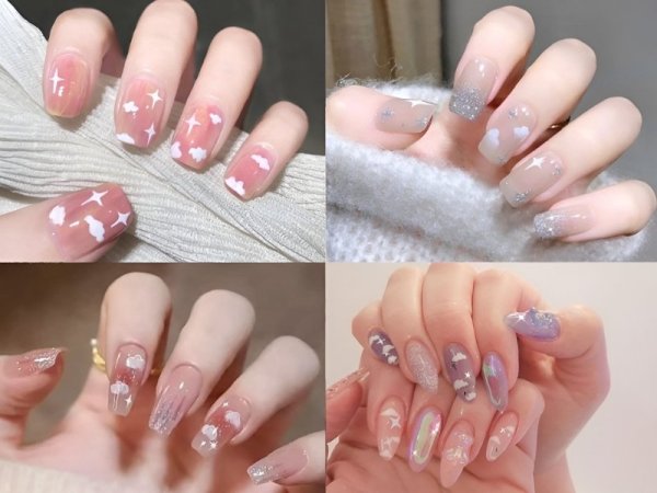 Đám mây mang lại cảm giác bay bổng nhẹ nhàng (Nguồn:@giangtran0806 – Pinterest, @gaabiespinola – Pinterest) Sơn đám mây phù hợp với màu móng pastel (Nguồn: @lovenailsbysarah – Pinterest)Nail sơn thạch mắt mèo