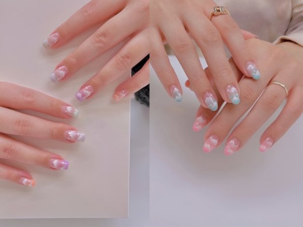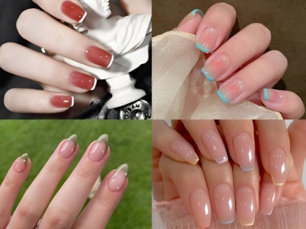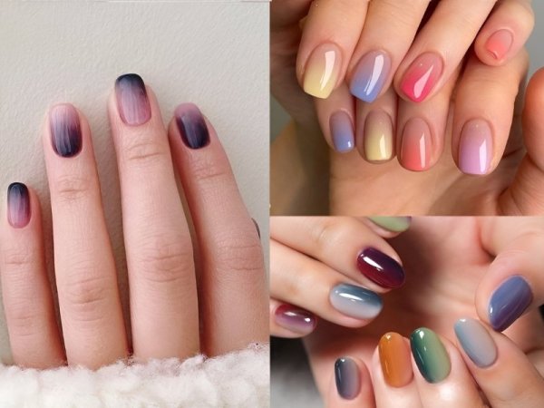 Mẫu nail sơn thạch đơn giản ombre giúp đôi tay thanh thoát hơn (Nguồn:howlifestyles.com, @minhhngnt – Pinterest, @moonnnnn1712 – Pinterest) Nail ombre không kén dáng móng và màu da (Nguồn: m.shein.com)Mẫu nail sơn thạch bàn cờ