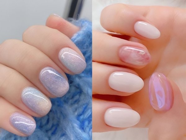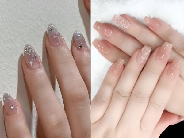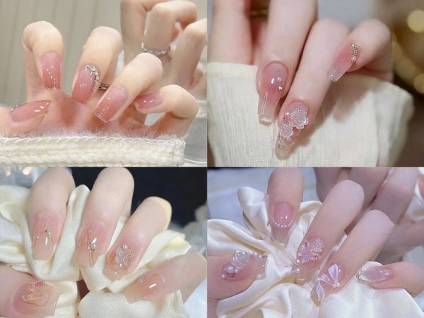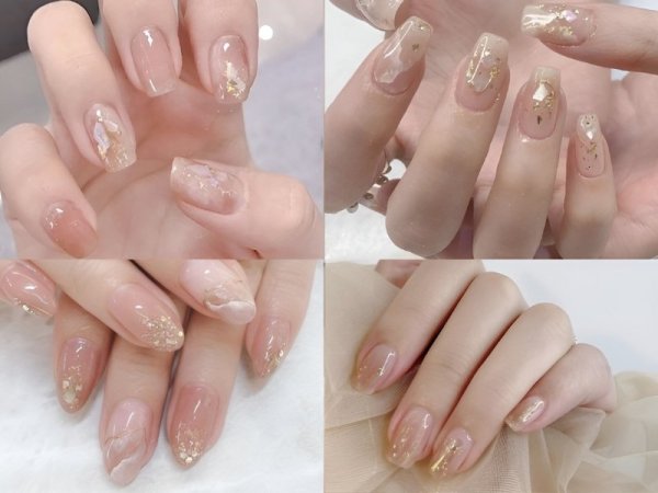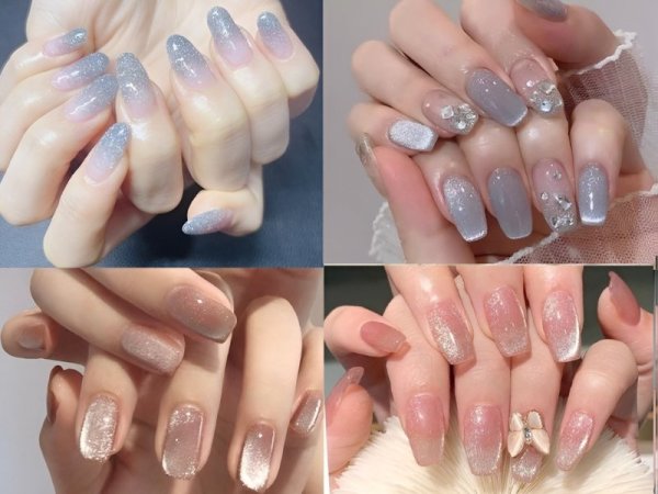 Mẫu nail sơn thạch đơn giản khi kết hợp với xà cừ ẩn tạo cảm giác sang mịn (Nguồn: @ngoccam648 – Pinterest, @thanh_pt – Pinterest, @ptthanh7 – Pinterest) Mẫu nail thạch đơn giản vớ lớp ẩn xà cừ lấp lánh và cứng cáp hơn (Nguồn: @nthu81051 – Pinterest, @ferdi212022 – Pinterest)Mẫu nail thạch đính đá