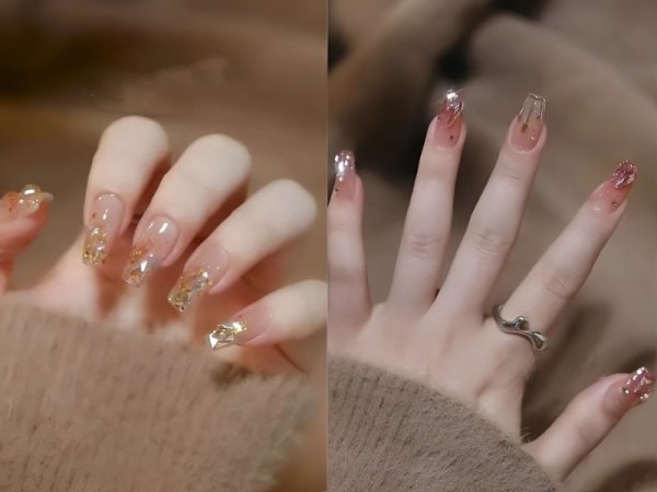 Nhắc đến nail sang chảnh, bạn nhất định phải thử bộ móng tay sơn thạch đính đá. Các bạn chọn màu móng nền thạch tự nhiên theo sở thích, sau đó tạo kiểu, gắn đá hoặc hạt cườm để tạo hình, tạo khối cho móng theo sở thích cá nhân.