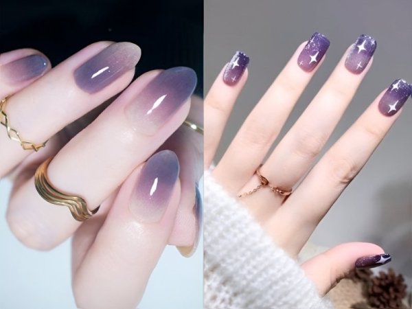 Các bạn có thể biến tấu mẫu nail sơn thạch đơn giản màu tím của mình bằng cách sơn ombre, sơn mắt mèo, sơn vân đá, phủ kim tuyến hoặc sơn ẩn xà cừ. Ngoài ra, các bạn có thể tạo điểm nhấn cho đôi tay bằng các mẫu trang sức mạ vàng, mạ bạc tinh tế.
