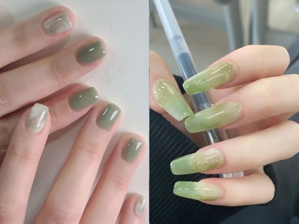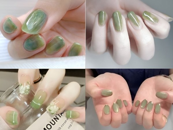 Màu xanh lá mang lại cảm giác tươi mới, mát mẻ, tạo sự hứng khởi cho người sơn móng. Tùy thuộc vào tone da mà bạn sẽ chọn cường độ màu nền xanh lá khác nhau. Theo đó, các bạn có da vàng hoặc da trắng nên ưu tiên chọn màu xanh lá pastel để có một mẫu nail sơn thạch đơn giản bắt mắt, nhẹ nhàng và thanh lịch.