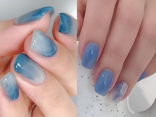 Mẫu nail sơn thạch đơn giản màu xanh dương huyền bí và tươi mới (Nguồn: Kbeauty Addiction, @royleahr – Pinterest) Xanh dương là màu nail phù hợp với các nữ nhân viên văn phòng thanh lịch, nhã nhặn (Nguồn: etsy.com)Nail phối hai màu