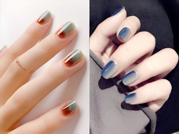 Để tạo điểm nhấn cho những mẫu nail sơn thạch đơn giản, các bạn nữ có thể nghĩ đến phương pháp sơn ombre. Sự pha trộn đậm nhạt giữa hai màu sắc trên cùng một nền móng tạo cảm giác mới mẻ hơn cho bộ móng. Các bạn nữ có đôi tay mũm mĩm, ngón tay không quá dài có thể chọn kiểu sơn móng này để tạo sự thanh thoát, nhẹ nhàng cho đôi tay của mình. Ngoài ra, màu ombre không kén dáng móng cũng như màu da nhờ sự cân bằng khi phối các màu sắc với nhau.