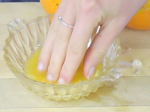 - Bước 1: Vắt nước cam và ngâm móng tay trong nước cam từ khoảng 10-15 phút.