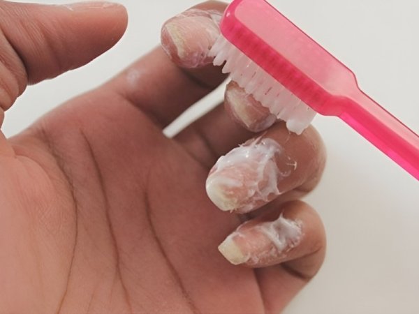 Trong kem đánh răng có chứa chất baking soda là chất giúp làm sạch móng và giúp móng chắc khỏe hơn. Để tăng thêm hiệu quả, bạn có thể kết hợp thêm với muối và làm theo cách làm móng tay nhanh dài tại nhà sau: