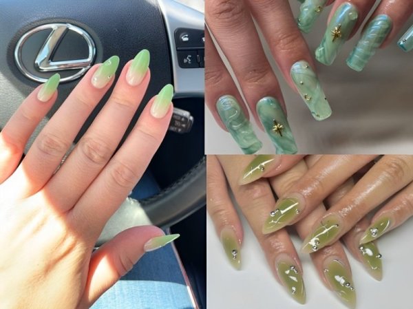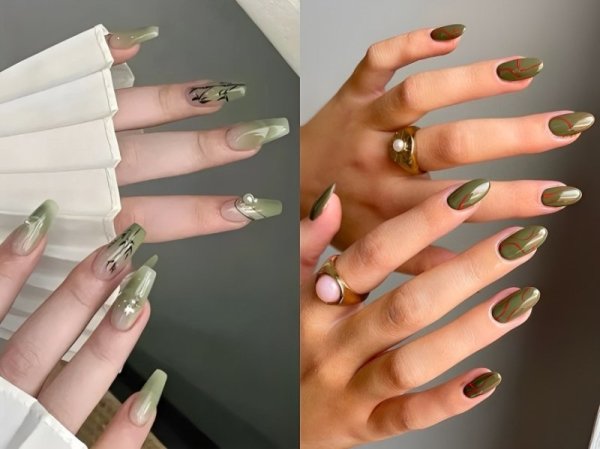 Mẫu nail màu xanh lá mạ. (Nguồn: miaisntcreative – Pinterest) Mẫu nail màu xanh lá mạ thu hút. (Nguồn: Linafsi – Pinterest)Mẫu nail thạch xanh lá