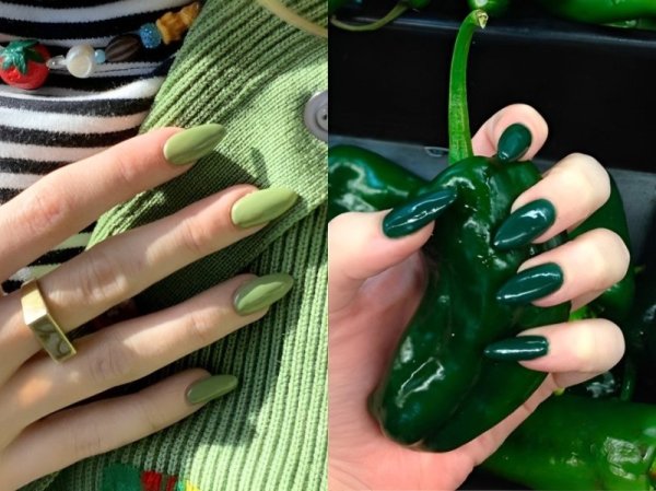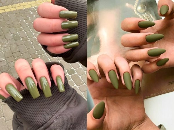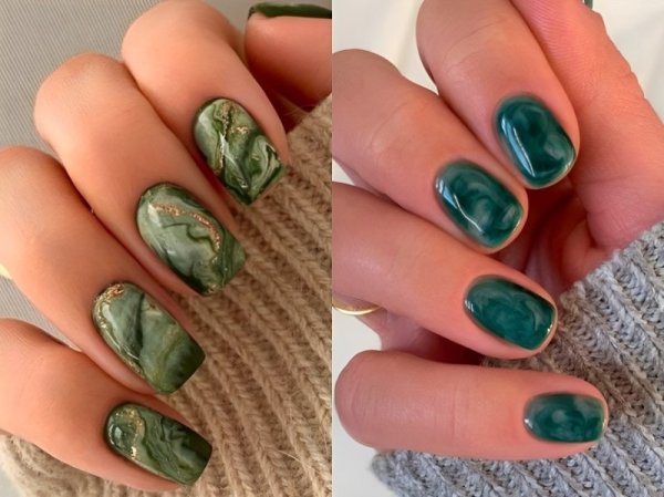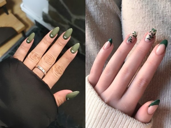 Mẫu nail xanh lá tự nhiên. (Nguồn: Best Ideas – Pinterest) Mẫu nail xanh lá tự nhiên cho bạn gái. (Nguồn: glamour.com)Mẫu nail xanh lá nữ tính