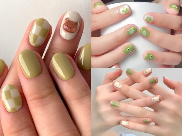 Mẫu nail màu xanh lá cây cute. (Nguồn: disordernary – Pinterest) Mẫu nail màu xanh lá cây cute cho bạn nữ. (Nguồn: Natsuki Ito* – Pinterest)Mẫu nail xanh lá pastel