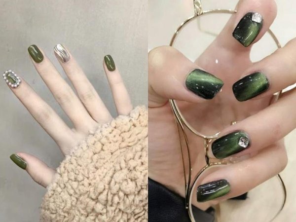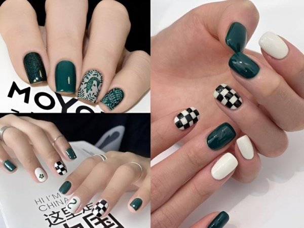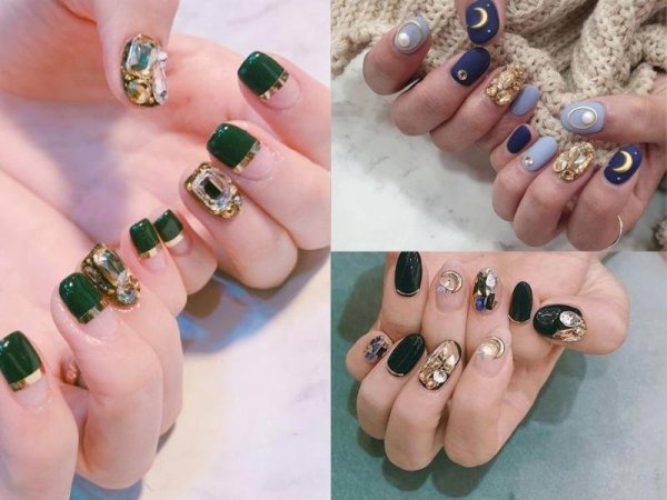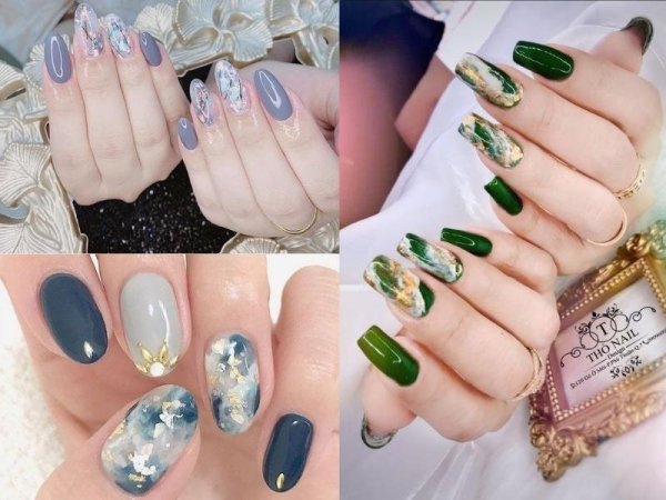 Mẫu nail màu xanh rêu trở nên đặc sắc hơn nhờ phối họa tiết hoặc đổi kỹ thuật sơn (Nguồn: Thanhthanh The nail, @ngoccam648 – Pinterest, @Ngchuoggg – Pinterest, lamnails.net) Mẫu nail màu xanh rêu trẻ trung nhờ các họa tiết tinh nghịch (Nguồn: @wakainu01 – Pinterest, @ports_candis – Pinterest) Nail màu xanh rêu đính đá sang trọng, quý phái và vô cùng thời thượng (Nguồn: @liyenhsieh – Pinterest, @thuhien722 – Pinterest)Nail vân đá xanh