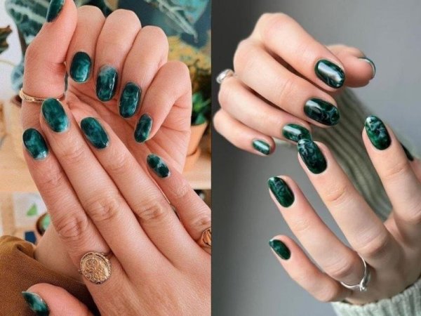 Nail vân đá xanh dương toát lên sự huyền bí, mờ ảo và tạo chiều sâu cho bộ móng. Trong khi đó, nail vân đá xanh lá mang đến cảm giác sang trọng nhưng vẫn thanh thoát, bay bổng. Để có đôi tay cuốn hút hơn, các bạn nên phối mẫu nail màu xanh vân đá cùng với các trang sức tinh xảo mạ vàng hoặc mạ bạc.