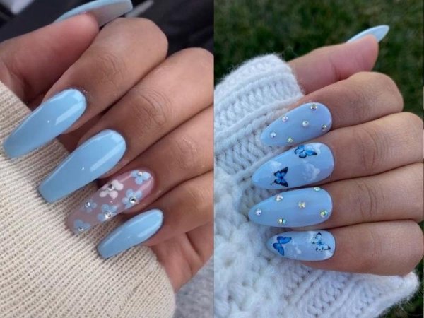 Móng tay màu xanh dương đẹp họa tiết dễ thương dành cho học sinh, sinh viên (Nguồn: @tt19nails, @AnnNhiiii – Pinterest, tarnonah, @domynailart – Pinterest, @tu_xjnh_pr0 – Pinterest) Mẫu nail màu xanh dương đẹp đính đá phù hợp với các buổi tiệc (Nguồn: @zebranails11 – Pinterest, @etsy – Pinterest)Nail xanh bơ