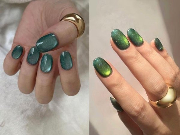 Mẫu nail màu xanh cổ vịt thích hợp với mọi điều kiện thời tiết (Nguồn: @nata3110, m.helijia.com, @baemikacchi – Pinterest) Nail màu xanh cổ vịt không kén da tay (Nguồn: hapigo, The Wonderlab)Nail mắt mèo xanh