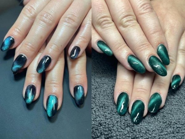 Bên cạnh đó, nail mắt mèo xanh còn giúp da tay trở nên sáng và mịn màng, đa sắc thái dưới sự tác động của phản xạ ánh sáng. Nhìn chung, các mẫu nail màu xanh mắt mèo có vẻ đẹp được pha trộn giữa sự tinh tế và tinh giản.