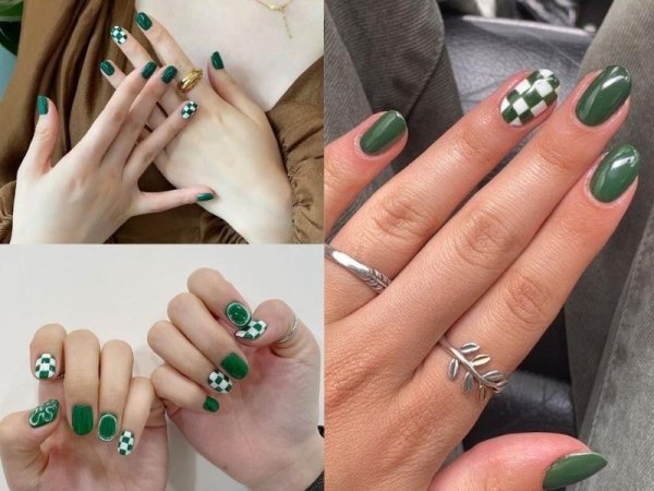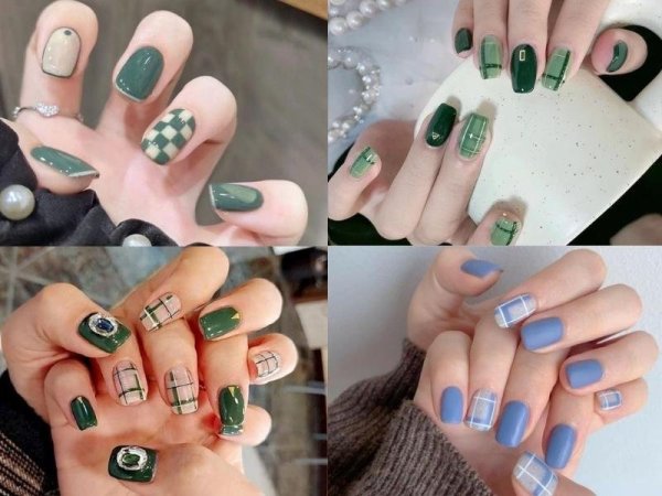 Mẫu nail màu xanh kẻ sọc cá tính, thú vị (Nguồn: enail.vn, @hammadsohail3677 – Pinterest, @vananh2389 – Pinterest) Mẫu nail màu xanh lá kẻ bàn cờ dễ thương nhưng cũng thời thượng (Nguồn: @luienjade – Pinterest, @Dilys_Chilly – Pinterest, @laalvaradoo – Pinterest)Nail màu xanh phối nhiều màu