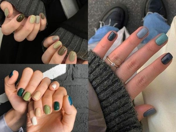 Phối nhiều màu sắc trên cùng một bàn tay là một trong những kiểu sơn móng tay được ưa thích. Cách này tạo nên bộ nail độc đáo, phù hợp với các bạn nữ yêu thích màu sắc và sự mới mẻ. Ngoài ra, những mẫu nail màu xanh nhiều màu gia tăng sự hài hòa với làn da, giúp da tay không bị dìm.