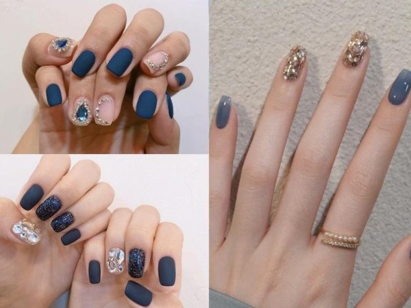 Đính đá xen kẽ giúp bạn có bộ móng sang trọng (Nguồn: awesome_nail__@moonnnnn1712 – Pinterest) Hình dáng và khối lượng đá trên các mẫu nail màu xanh đính đá được chọn tự do (Nguồn: @prettykeyaconcepts – Pinterest, ssinstyle, skhek.com) Mẫu nail màu xanh sang chảnh, nổi bật (Nguồn: @imsotiny – Pinterest)