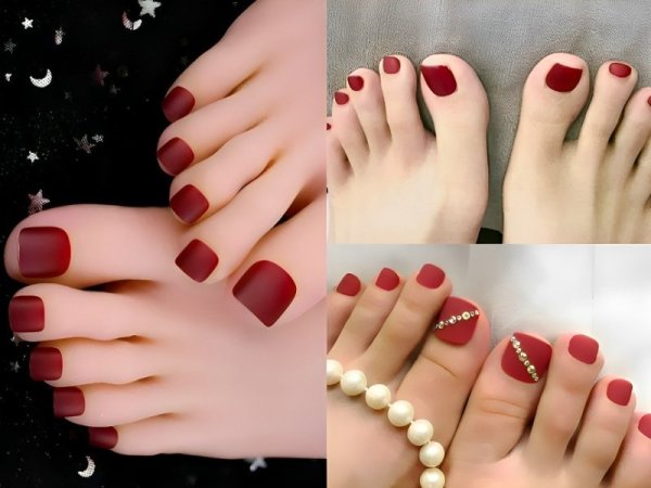 Mẫu nail sơn lì màu đỏ rượu vang mang đến một vẻ đẹp sang trọng và quyền lực. Với lớp sơn màu đỏ rượu vang lì và mờ, đôi bàn chân bạn sẽ trở nên thu hút đặc biệt. Phong cách này phù hợp với những người yêu thích vẻ đẹp cổ điển và quý tộc. Mẫu nail sơn lì màu đỏ rượu vang thích hợp cho các dịp đặc biệt như buổi tiệc công sở cuối năm hoặc tiệc đêm sang trọng.