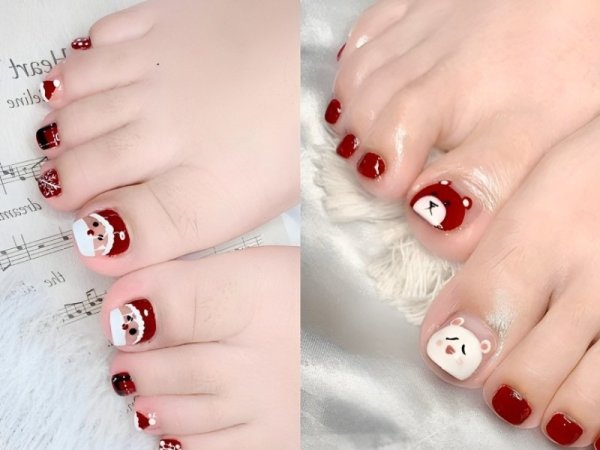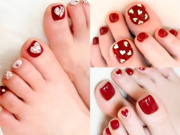 Nail chân đỏ rượu vẽ trái tim bắt mắt. (Nguồn: Ann Nhi – Pinterest) Móng chân màu đỏ rượu vẽ trái tim cho nữ. (Nguồn: trendy-u.com) Nail chân màu đỏ rượu vẽ trái tim cho nữ cực kỳ đẹp. (Nguồn: trendy-u.com)Nail chân đỏ rượu giáng sinh