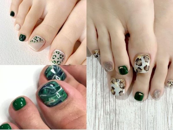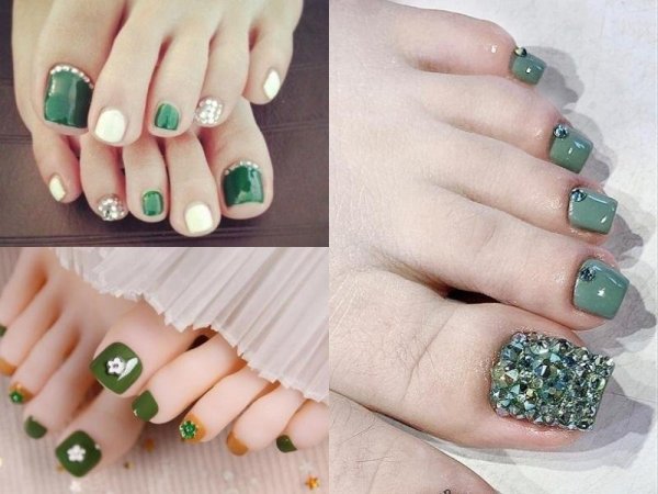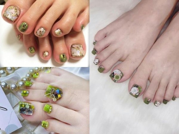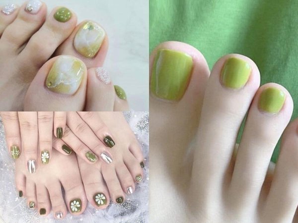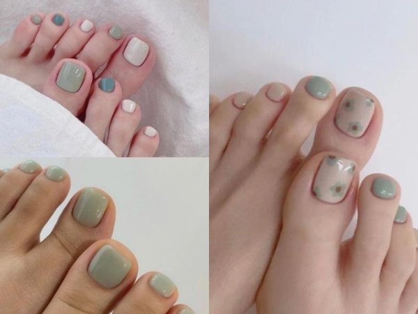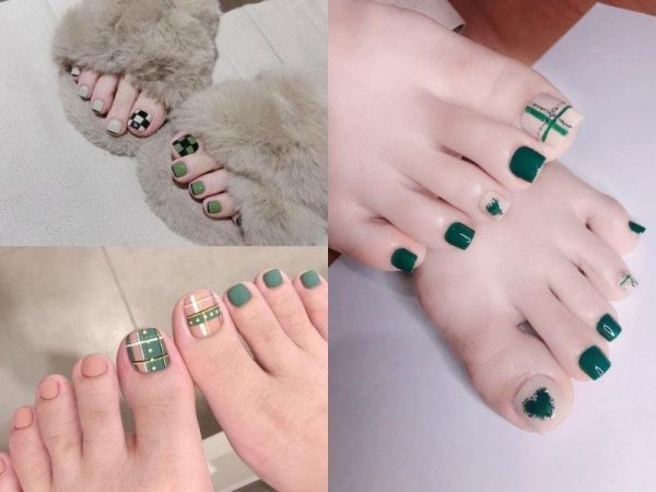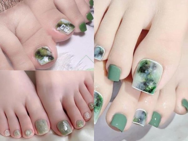 Gợi ý 20+ mẫu móng chân đẹp màu xanh rêu