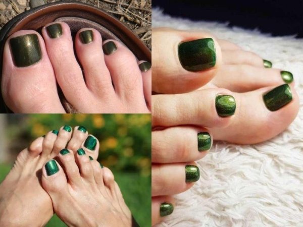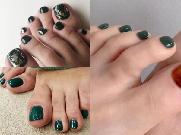 Móng chân đẹp màu xanh rêu đậm trơn tôn da cho các nàng (Nguồn: Gabby Anguiano, Golden Star