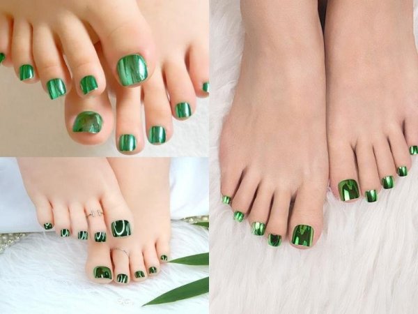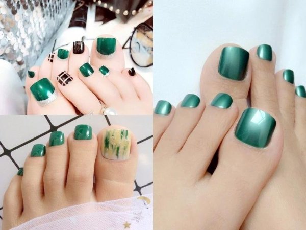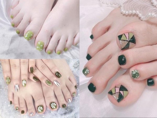 Móng chân màu xanh rêu tráng gương bắt mắt tinh tế (Nguồn: lamdepmoingay.com.vn, www.shein.com.vn) Móng chân màu xanh rêu tráng gương tôn sáng màu da của nàng (Nguồn: yody.vn, adayne.vn, PONGL)Móng chân màu xanh rêu họa tiết vẽ nhẹ nhàng