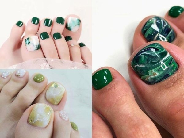 Móng chân màu xanh rêu vân đá có nhiều tông màu để các nàng chọn lựa (Nguồn: vi.alongwalker.co, yody.vn, tuoitrevasacdep.com) Móng chân màu xanh rêu vân đá vừa tinh tế vừa thời thượng (Nguồn: beaudy.vn, tuoitrevasacdep.com)Móng chân đẹp màu xanh rêu matte