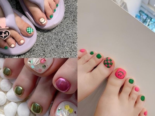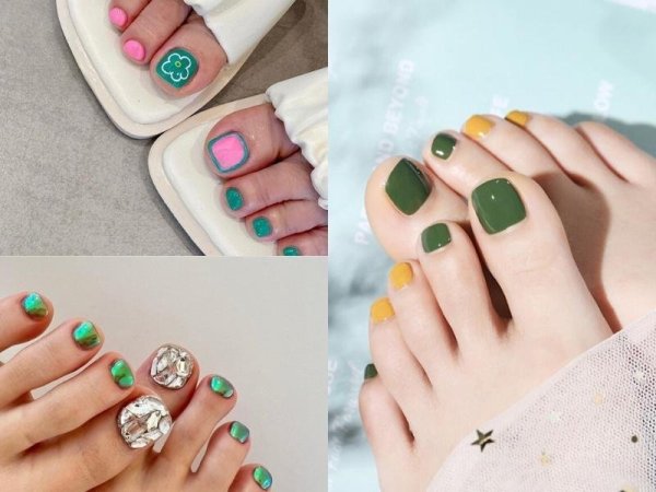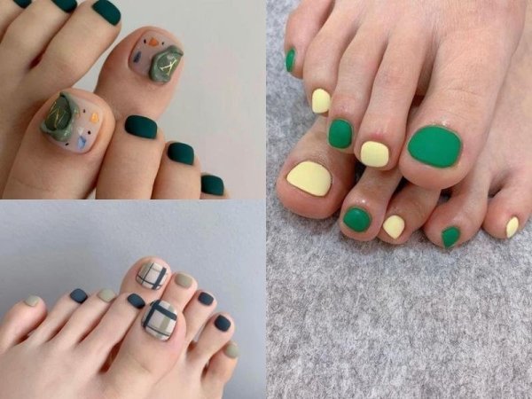 - Phối hợp nhiều màu xanh rêu: Có nhiều loại màu xanh rêu khác nhau, vì vậy bạn có thể sơn nhiều màu khác nhau trên bàn chân để có bộ móng cùng tông ưng ý.
