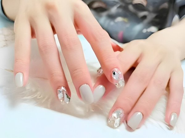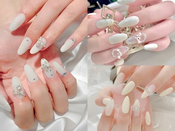 Nail trắng đính đá là một kiểu nail lộng lẫy, sang trọng và lấp lánh. Màu trắng tinh khiết kết hợp với các viên đá quý nhỏ hoặc kim cương tạo nên một vẻ đẹp sang trọng và đẳng cấp cho móng tay bạn. Kiểu nail này phù hợp cho những người muốn muốn tỏa sáng trong các dịp đặc biệt như tiệc cưới, lễ kỷ niệm hoặc các sự kiện quan trọng khác.