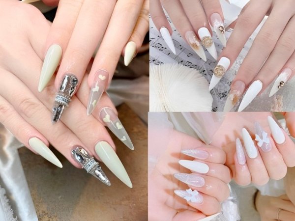 Nail nhọn trắng là một kiểu nail phá cách và cực kỳ nổi bật. Đầu móng tay được chuốt nhọn, tạo nên vẻ đẹp sắc sảo độc đáo. Kiểu nail này phù hợp cho những người muốn tạo dấu ấn cá nhân và thể hiện sự tự tin trong phong cách. Nail nhọn trắng có thể được thiết kế đơn giản hoặc đính kèm các họa tiết sáng tạo, tùy thuộc vào sở thích của mỗi người. Nó thích hợp cho các dịp casual, tiệc tùng hoặc các sự kiện thời trang quan trọng.