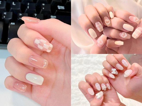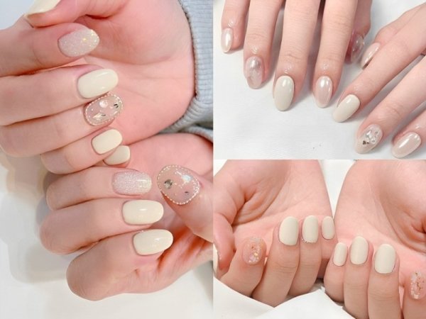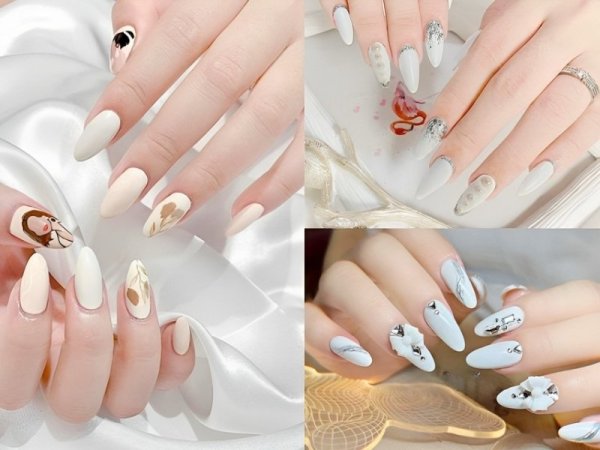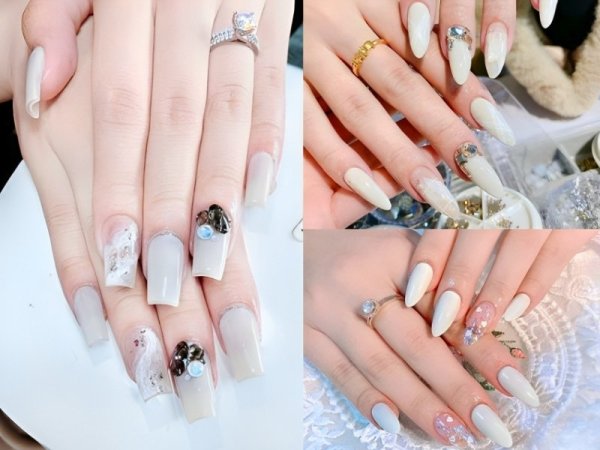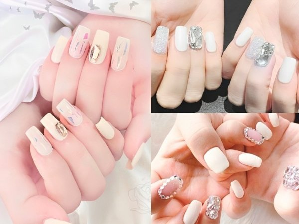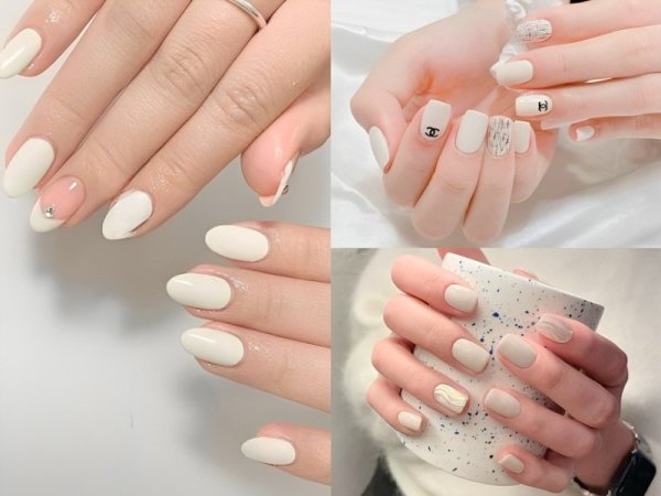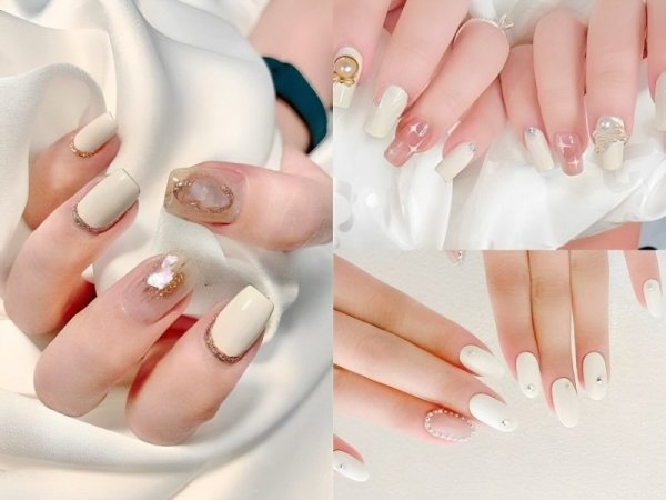 Nail màu trắng ngà. (Nguồn: Jade Phan NailArt – Pinterest) Nail màu trắng ngà đẹp. (Nguồn: Hani Ngọc – Pinterest)Nail trắng sữa