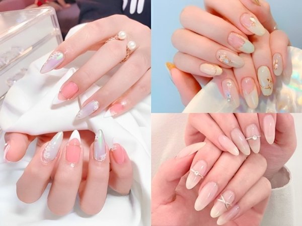 Nail trắng sữa bắt mắt. (Nguồn: Hani Ngọc – Pinterest) Nail trắng sữa dành cho các nàng. (Nguồn: beauty.authors.jp)Nail trắng đính đá