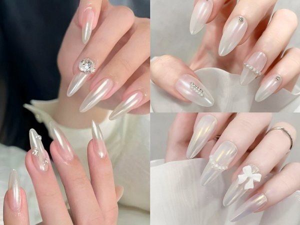 Nail màu trắng trắng nhũ là một lựa chọn tinh tế và ấn tượng cho bất kì nàng nào muốn làm nổi bật đôi bàn tay. Màu trắng nhũ tạo ra hiệu ứng lấp lánh và lung linh bắt mắt. Kiểu nail này phù hợp với những người yêu thích sự sang trọng và gợi cảm.