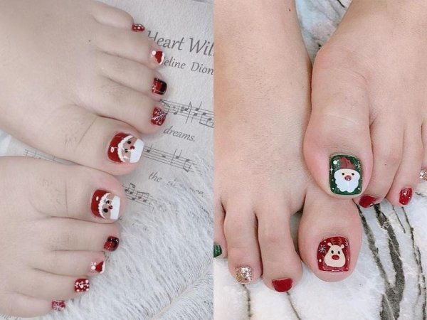 Nail vẽ móng chân màu đỏ họa tiết Noel (Nguồn: Bilee Nails, Chi Pandora, Salena Huynh – Pinterest) Bạn có thể diện mẫu nail chân đáng yêu này vào dịp Noel sắp tới (Nguồn: Lannguyen Nguyễn, tttrang – Pinterest)Tổng kết