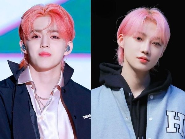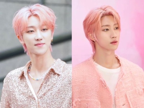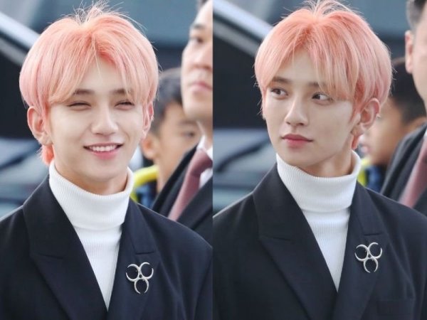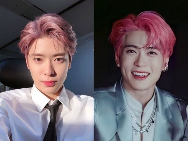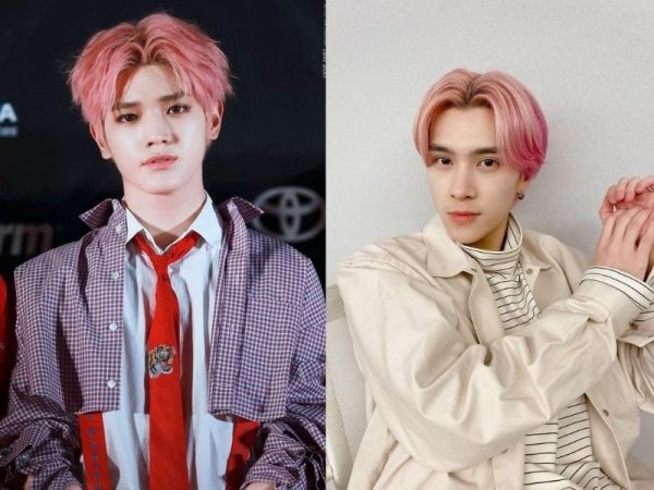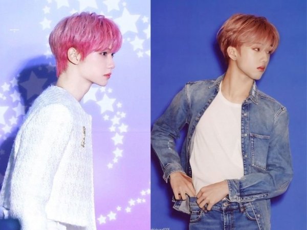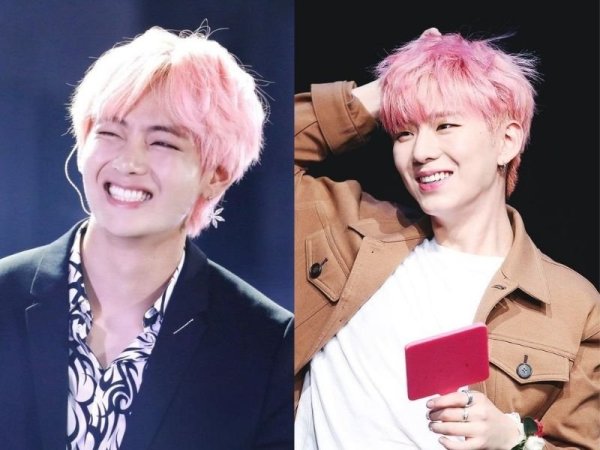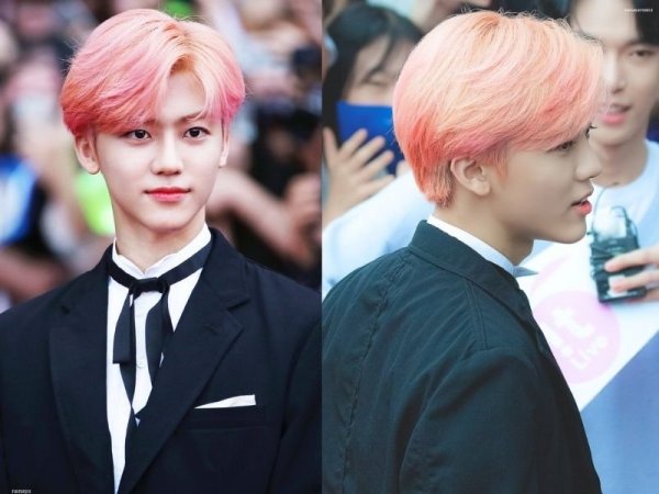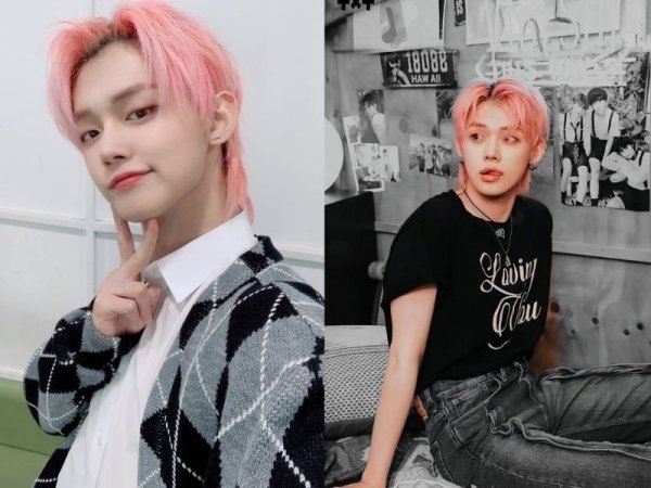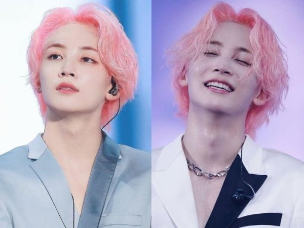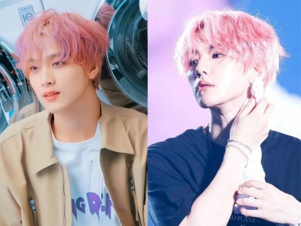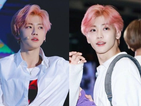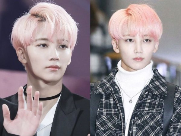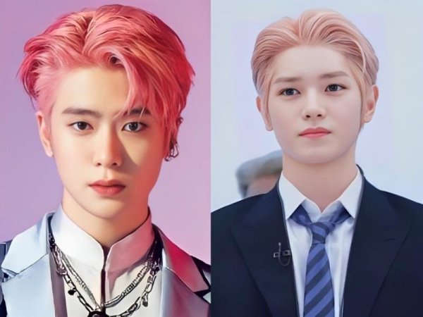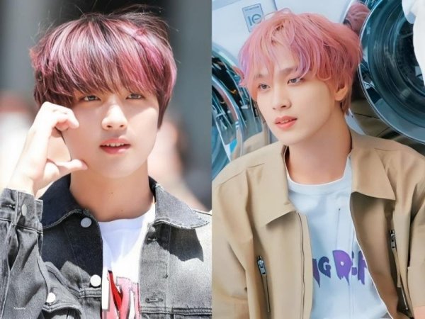 Tóc xoăn ngắn nhuộm màu hồng khói nhạt giúp chàng trở nên lãng tử hơn (Nguồn: Haechan – Pinterest, Buôn chuyện KPOP Fanpage Facebook) Tóc hồng khói xoăn ngắn giúp khuôn mặt thanh thoát và góc cạnh (Nguồn: Buôn chuyện Kpop Fanpage Facebook)Tóc 2 mái nam nhuộm hồng khói ánh cam