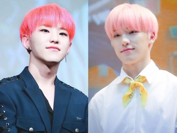 Tóc ngố nam khói hồng trẻ trung và năng động cho chàng (Nguồn: Woozi – pinterest) Tóc mái ngố nam là phiên bản nâng cấp của kiểu tóc Mohican nổi tiếng (Nguồn: Hosh – Pinterest, Dino – Pinterest)Tóc xoăn ngắn nhuộm hồng khói nhạt