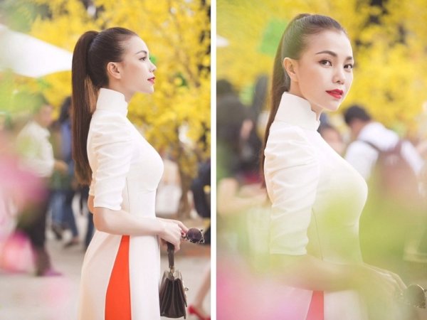 Tóc mặc áo dài đơn giản và thanh lịch (Nguồn: Đỗ Trịnh Hoài Nam, Thiều hoa) Kiểu tóc mặc áo dài được nhiều nàng Hậu lựa chọn (Nguồn: Yan.vn)Tóc buộc đuôi ngựa