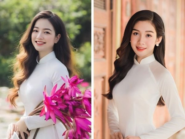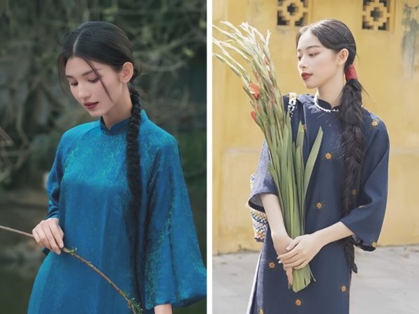 - Kiểu dáng của áo dài: Tùy thuộc vào kiểu áo dài bạn chọn, sẽ có kiểu tóc phù hợp. Áo dài truyền thống thường kết hợp với tóc thả tự nhiên hoặc búi thấp, trong khi áo dài cách tân thường phối với tóc mái thưa, tóc búi cao, tóc ngắn uốn xù. Điều này giúp tạo nên vẻ đẹp phong cách và duyên dáng cho bạn.