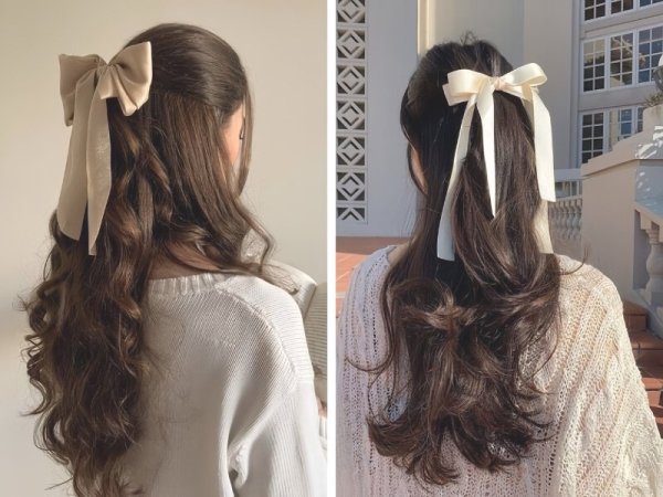 Kiểu tóc mặc áo dài cũng được nhiều nàng Hậu sử dụng trong các dịp quan trọng (Nguồn: Báo gia đình và sức khỏe) Để tạo thêm sự trẻ trung năng động cho kiểu tóc, đừng ngần ngại hãy thêm các chiếc nơ lên tóc mình nhé! (Nguồn: Vua hàng hiệu, Girl – Pinterest)Tóc lượn sóng – Kiểu tóc mặc áo dài trắng