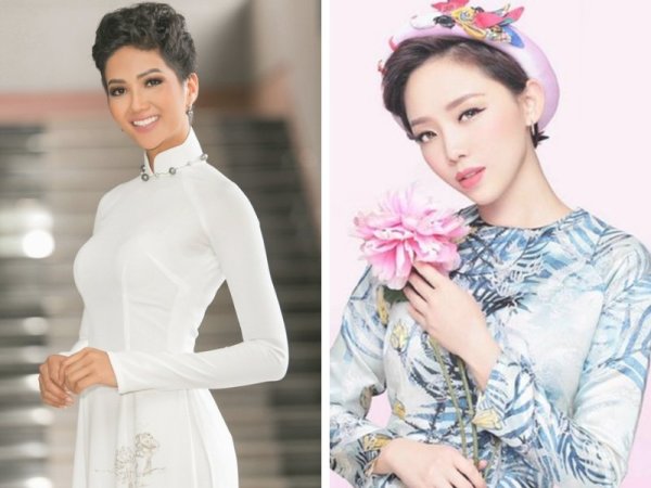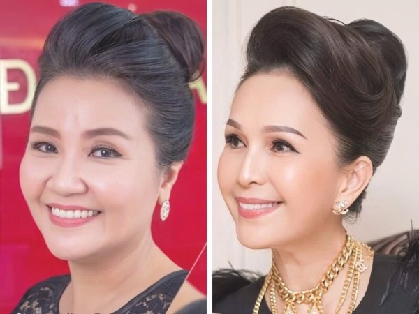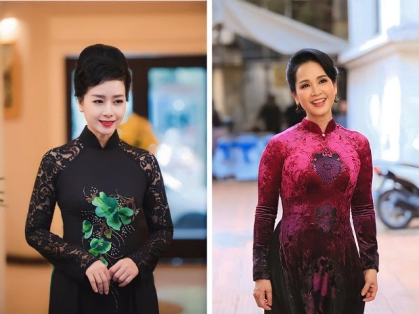 Kiểu tóc mặc áo dài cho người trung niên sang trọng quý phái nhưng không quá cầu kỳ (Nguồn: Đỗ Trịnh Hoài Nam, Thiều hoa) Nhiều nghệ sĩ Việt lựa chọn kiểu tóc này không chỉ trong trang phục áo dài (Nguồn: nqmedia.vn)Kiểu tóc mặc áo dài cho tóc ngắn
