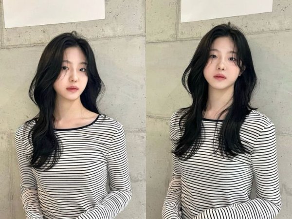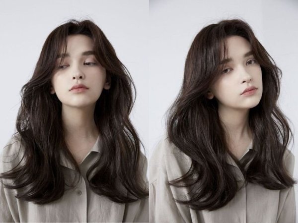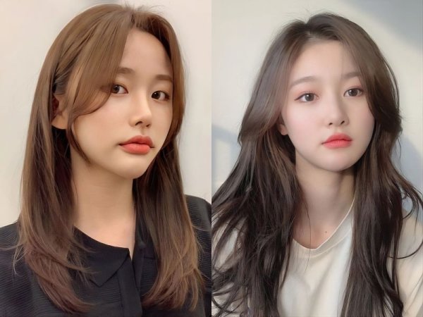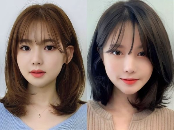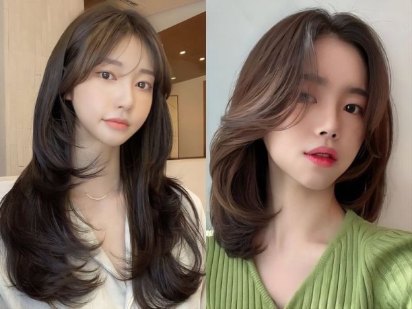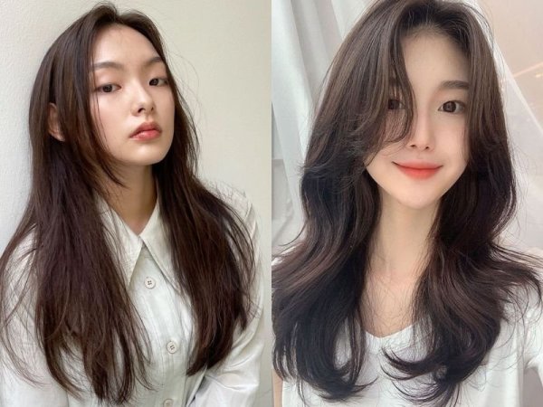 Tóc mái layer góp phần tôn lên vẻ đẹp tinh tế cho dáng mặt trái xoan (Nguồn: Alice, Chahong- Pinterest)Mái layer bay cho nữ trán cao